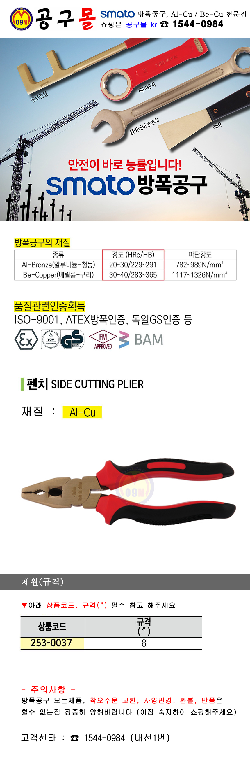 세신 펜치(방폭) AL-CU 200mm(8) SESHIN 버팔로, 방폭콤비스패너, 방폭렌치, 방폭공구, 공구몰 253-0037