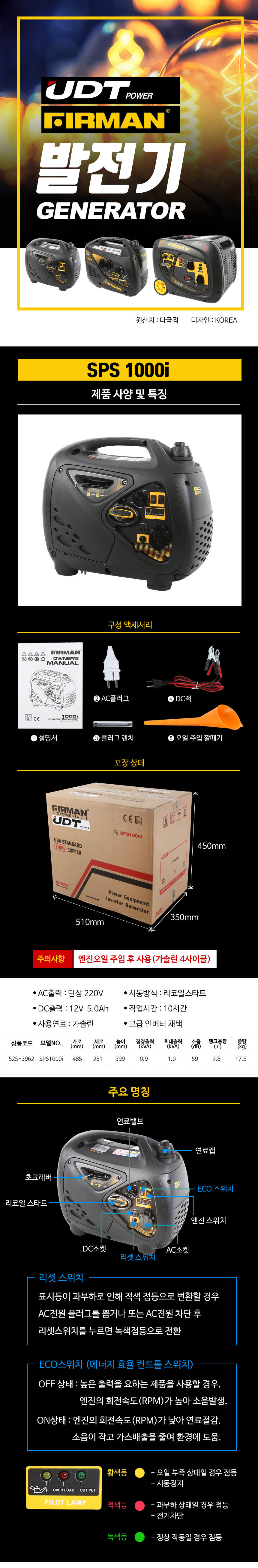 퍼맨 발전기 (방음가솔린) SPS1000I (1KVA) 저소음발전기 17.5Kg 525-3962