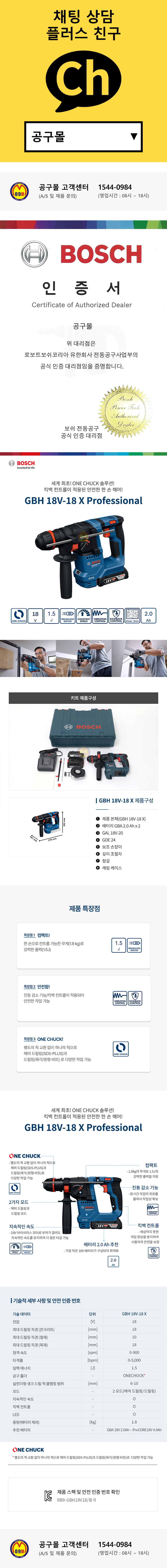보쉬 충전해머드릴 GBH18V-18X (18V-2.0AH-드릴척교체) 햄머드릴 SDS