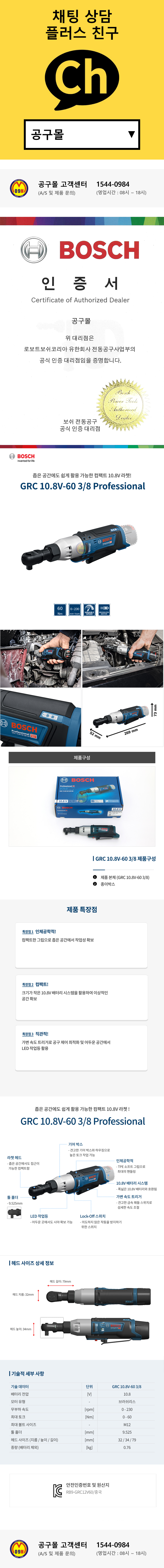 보쉬 3/8 충전라쳇렌치 GRC10.8V-60 (10.8V-베어툴) 임팩라쳇