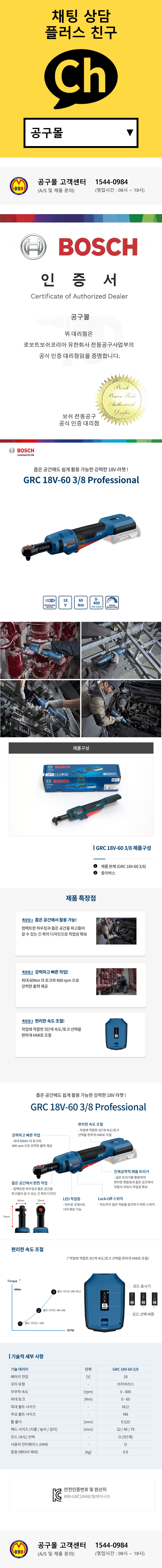 보쉬 3/8 충전라쳇렌치 GRC18V-60 (18V-베어툴) 임팩라쳇