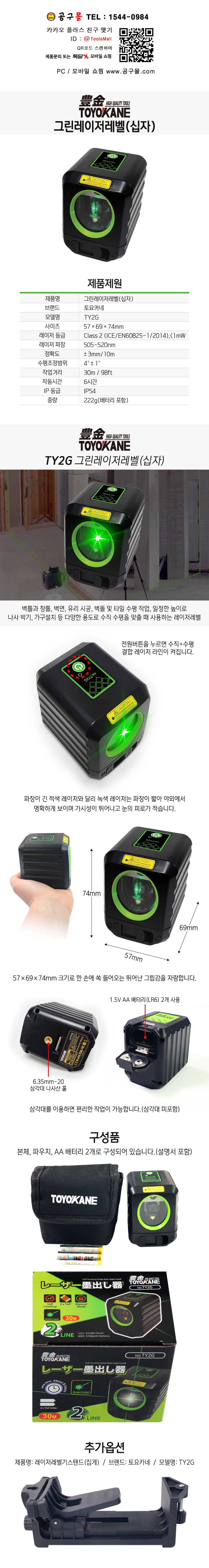 토요카네 그린레이저레벨(십자) TY2G 그린빔, 오토레벨, TOTOKANE, 측정공구, 공구몰 4047-004