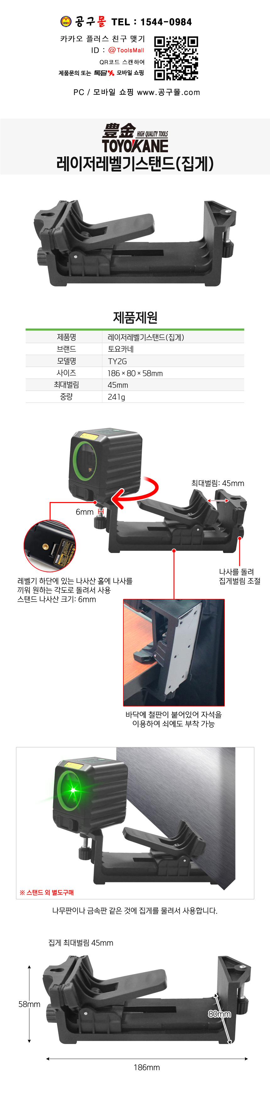 토요카네 레이저레벨기스탠드(집게) TY2G 오토레벨, TOTOKANE, 측정공구, 공구몰 4047-005