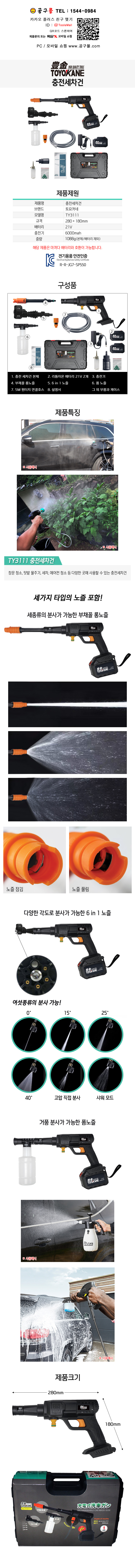 토요카네 충전세차건(배터리2개) TY3111 21Vx6.0A 2팩, TOTOKANE, 가든공구, 공구몰 214-5012