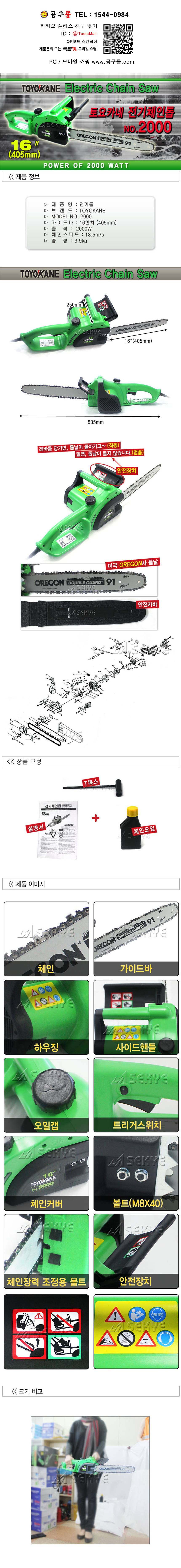 토요카네 전기체인톱 2000 405mm 220V-2000W 톱날91번-28.5T, TOTOKANE, 체인톱, 공구몰 307-6026