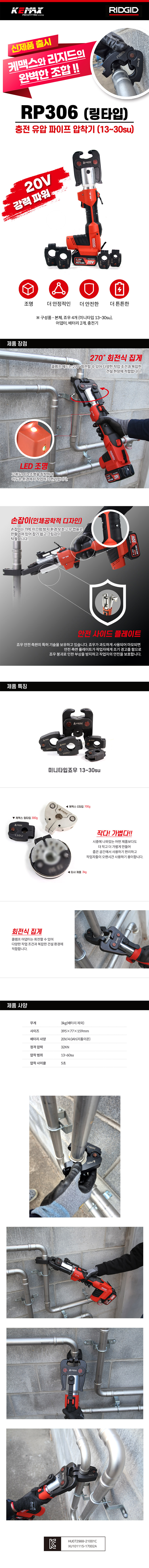 케맥스 충전배관압착기(SET) RP306-RING 13-30SU 20V 6.0Ah 2팩 SR압착기 링타입 배관공구 RP306RING-30SU