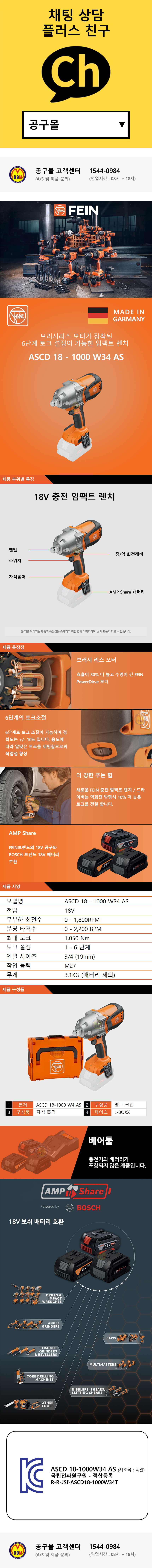 파인 임팩트렌치 ASCD18-300-W2(18v-6.0ah) , fein, 충전공구, 공구몰