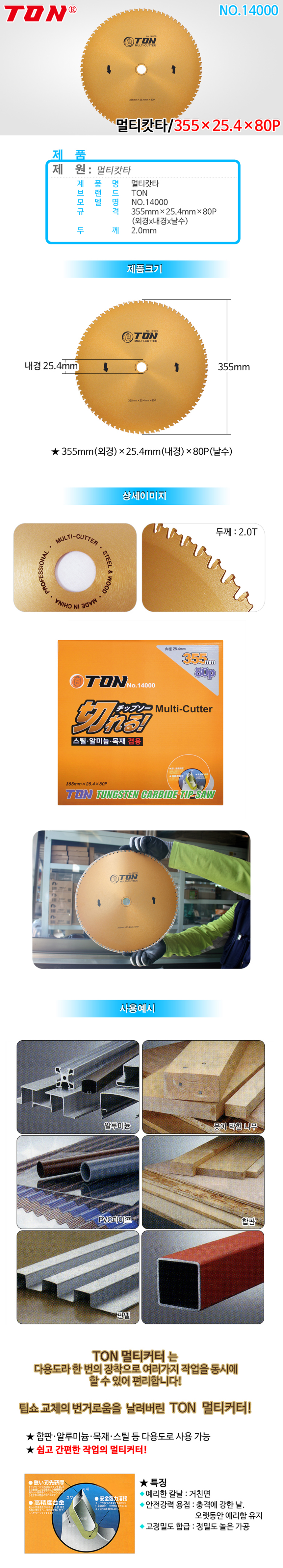 톤 멀티 원형톱날(목재/철재) NO.14000 355mm(14)x80Tx25.4mm (목재&스틸) TON 공구몰 214-5056