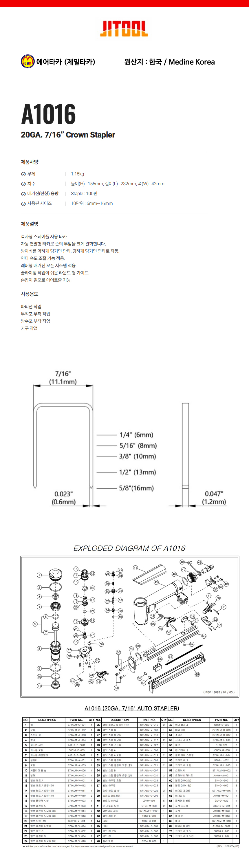 제일타카 에어캡타카 ST-64C (ST핀18-64) 공구몰닷컴 631-3155