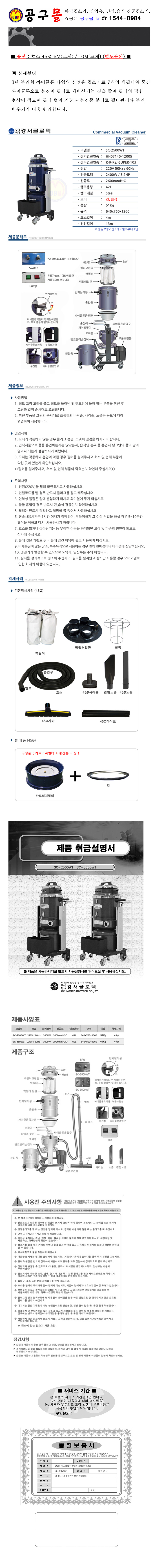 경서 산업용 건식/습식 2모터 청소기 SC-2500WT(3단) 경서글로텍, 싸이클론타입, 진공청소기, 공구몰, SC2500WT