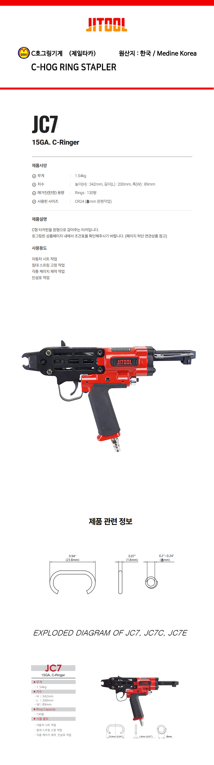 제일타카 에어 C호그링기계 JC7 (자동차시트형 8mm) 에어호그링, 공구몰 631-2518