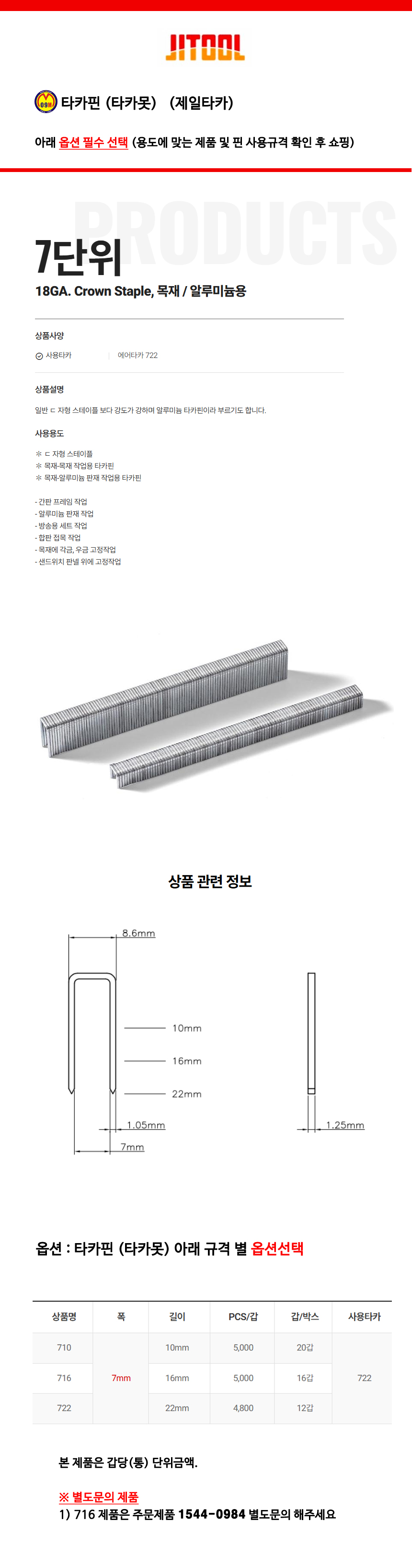 제일타카 알루미늄못 722MAH 폭7x길이22mm (4800PCS) 간판제작못 공구몰닷컴 631-1245