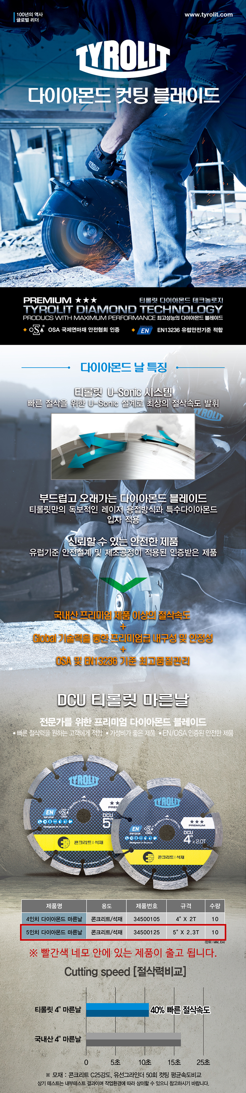 티롤릿 다이아몬드휠 건식5 (125-2.3t) , 다이아몬드, 콘크리트절단,34500125