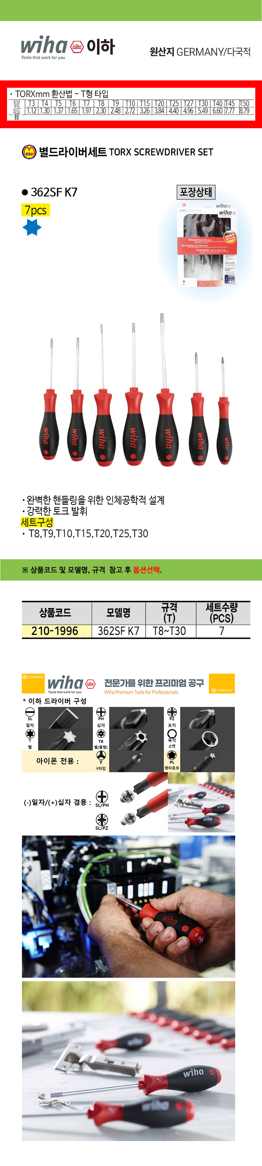 이하 별드라이버세트 362SFK7 (T8-T30) 7Pcs wiha 드라이버렌치 공구몰 210-1996