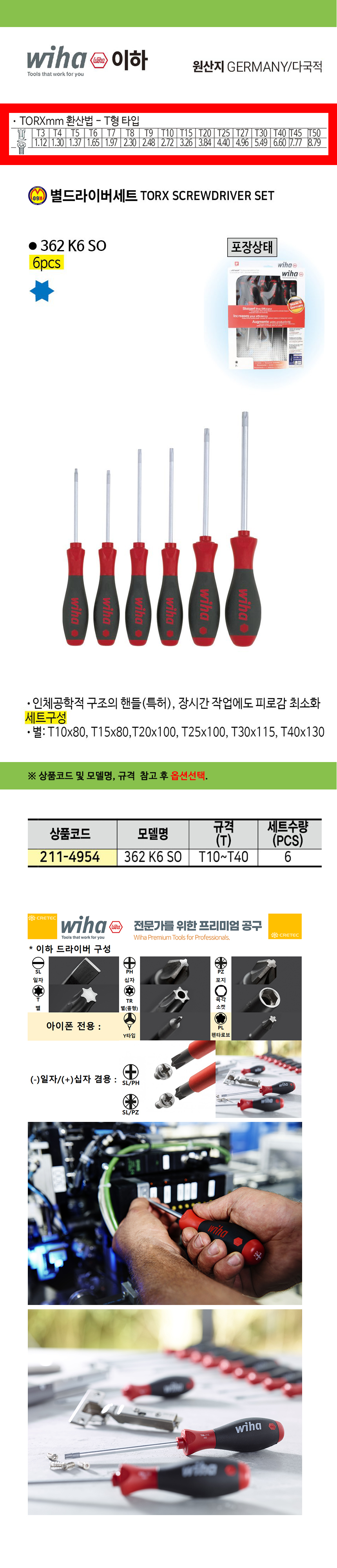 이하 별드라이버세트 362K6SO (T10-40) 6Pcs wiha 드라이버렌치 공구몰 211-4954