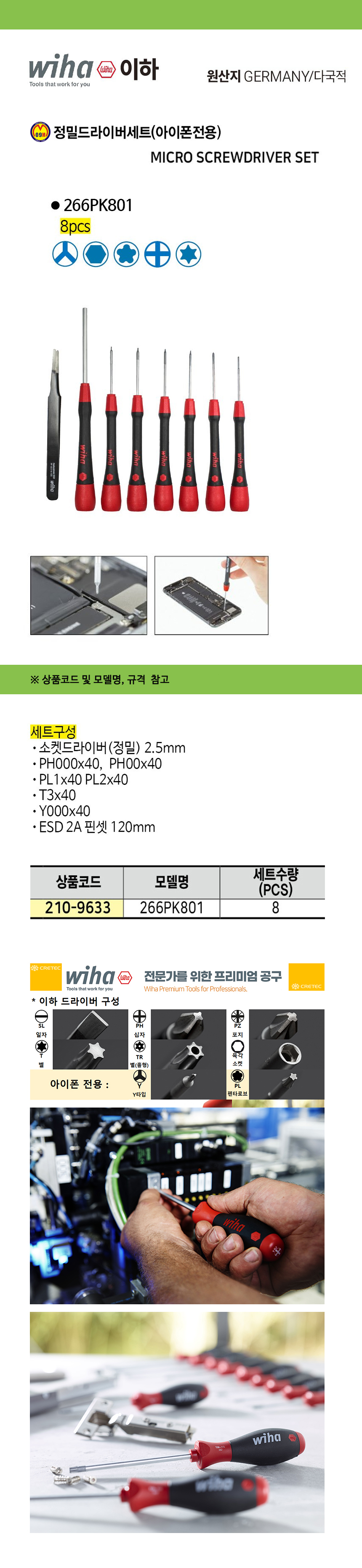 이하 정밀드라이버세트 266PK801 (아이폰전용) 8pcs wiha 전자드라이버 공구몰 210-9633
