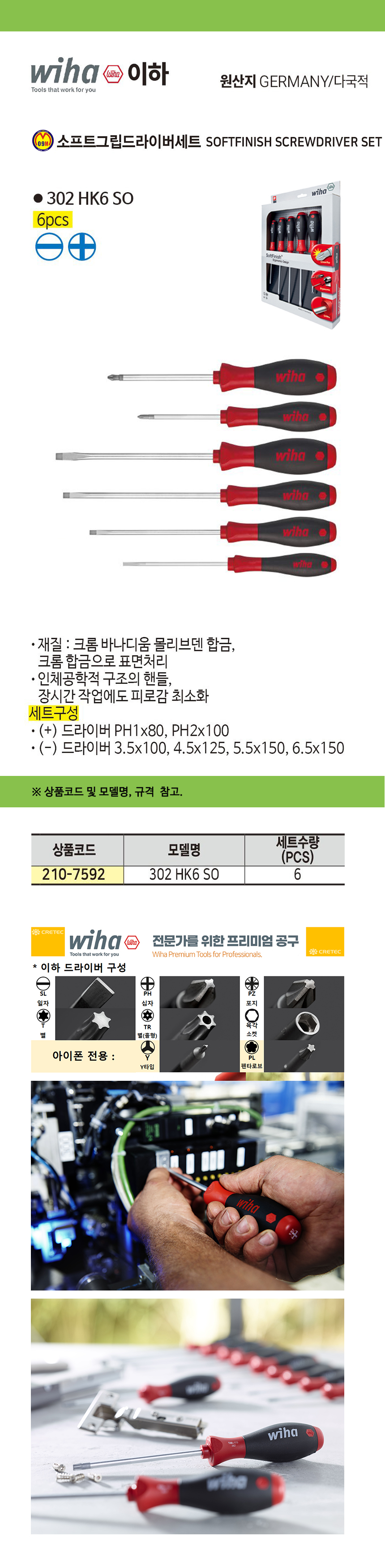 이하 소프트그립 드라이버세트 302 HK6 SO(6PCS) wiha 십자, 일자 전자드라이버 공구몰 210-7592