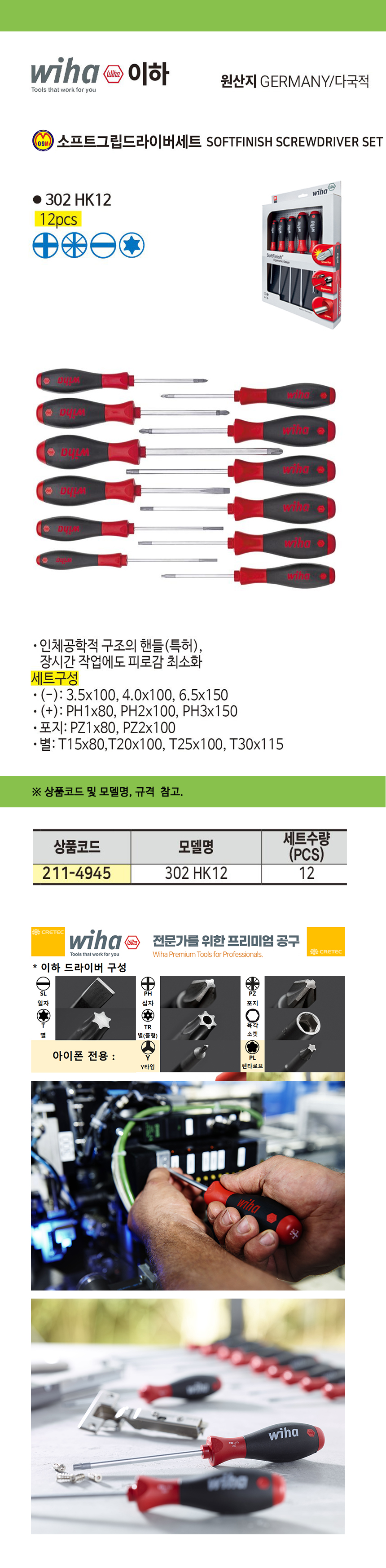 이하 소프트그립 드라이버세트 302 HK12(12PCS) wiha 십자, 일자 전자드라이버 공구몰 211-4945