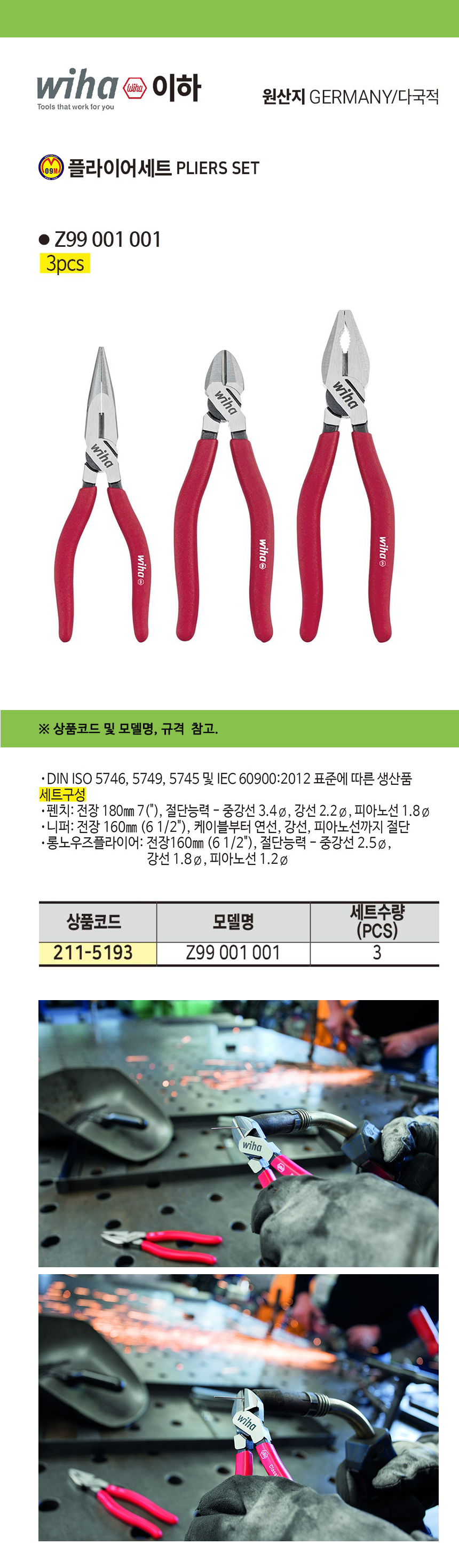 이하 플라이어세트 Z99000101 (3PCS) (니퍼,뺀찌,롱로우즈) WIHA 공구몰 211-5193