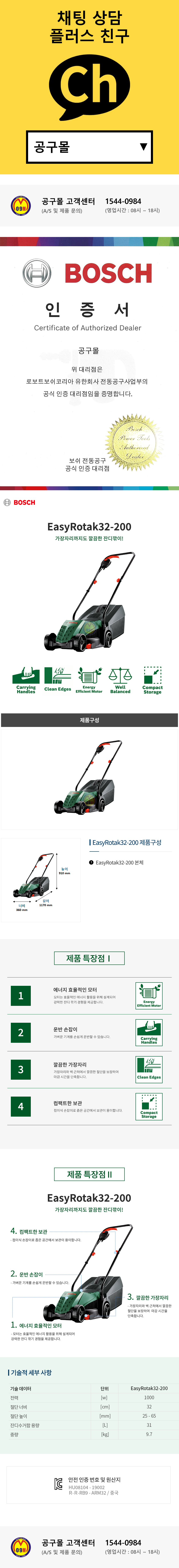 보쉬 유선 잔디깍기 EasyRotak32-200 (ARM32대체품) 잔디깍기 제초기