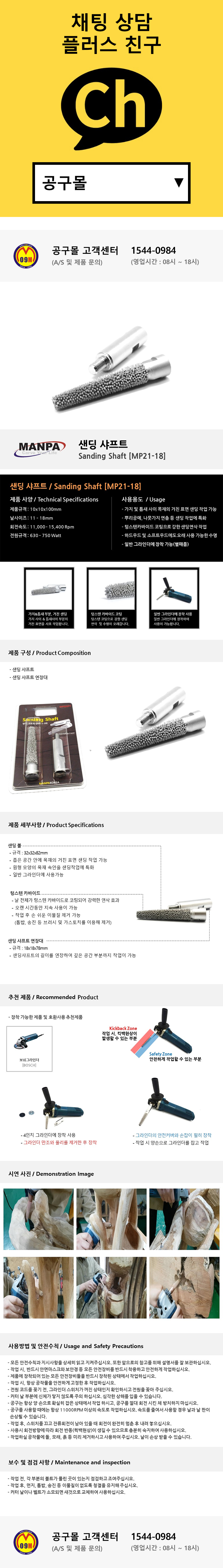 만파 그라인더용 샌딩 샤프트 MP21-18 홈파기 샌딩기