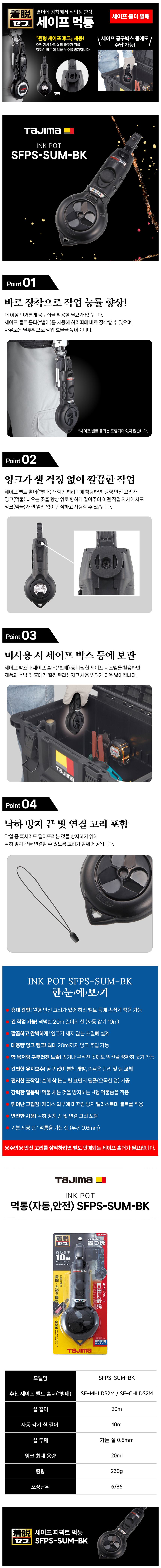 타지마 먹통(자동,안전) SFPS-SUM-BK 20m/10m 벨트홀더대응 TAJIMA 111111810148