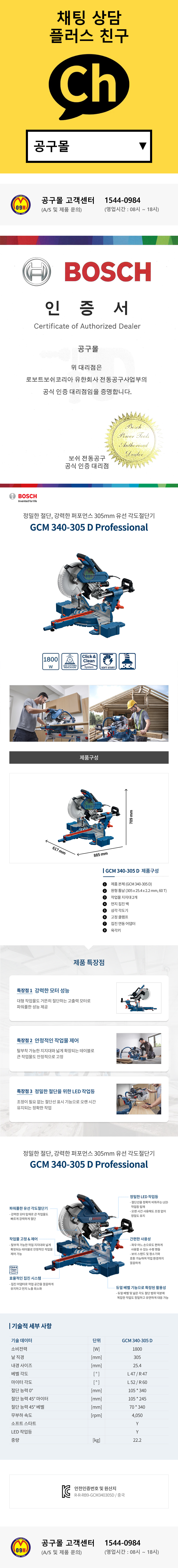 보쉬 슬라이딩 각도절단기 GCM340-305D (1800W-305mm) 목공용 절단기