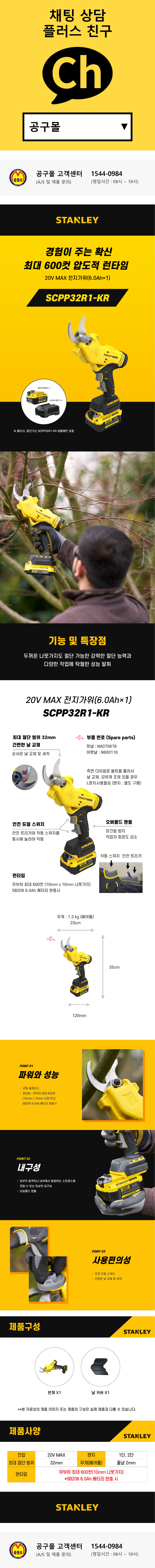 스탠리 20V MAX 충전전자기위 SCPP32R1 (20V-6AH 1개세트) 가지치기 충전가위