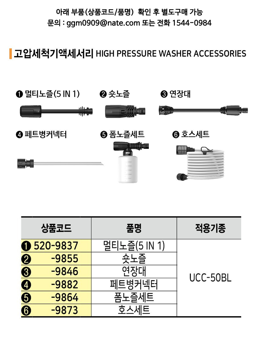 UDT 충전고압세척기 UCC-50BL (20V,5Ah,1B,50바,호스5M) 공구몰 520-7617