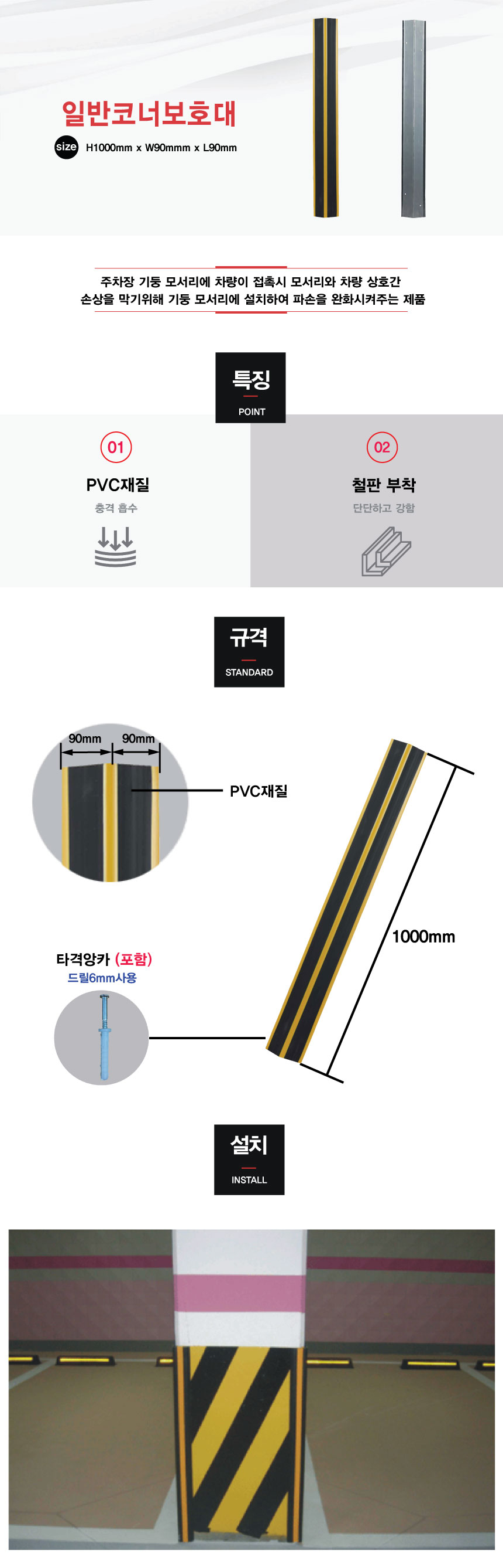해광 H7 일반코너보호대 H1000 x W90 x L90mm (피스포함) 코너보호대,벽모서리보호대, 모서리보호대 공구몰