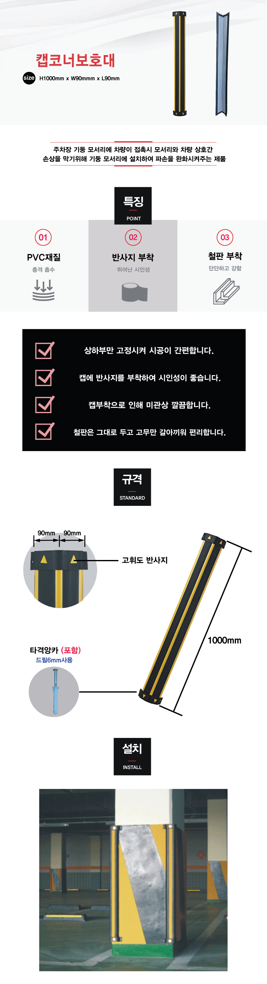 해광 H7 캡코너보호대 H1000x W90x L90mm (피스포함) 해광/보호대/H빔보호대/벽모서리보호대/모서리보호대/안전용품
