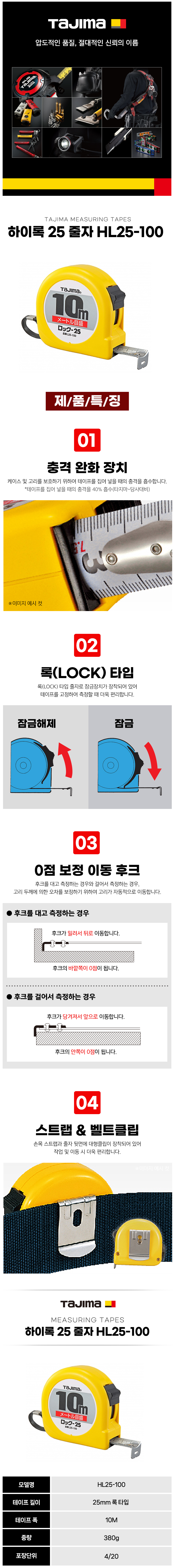 타지마 자동줄자(하이록) HL25-100 (폭25mm-10M) TAJIMA 141402450206