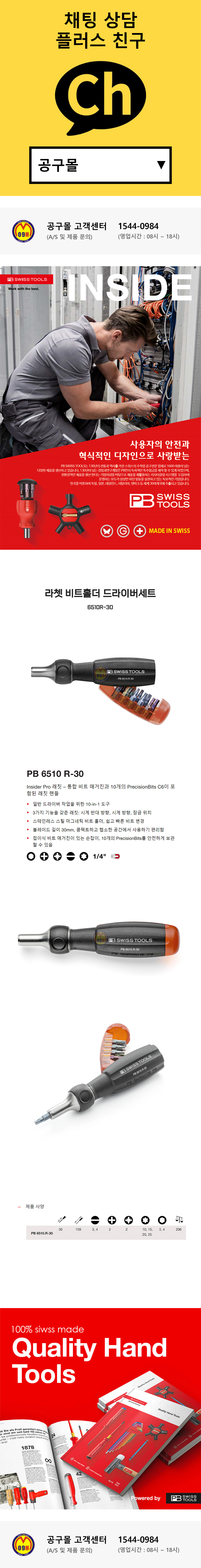 PBSWISS 라쳇드라이버세트 PB-6510R-30 (11PCS) 비트교체형