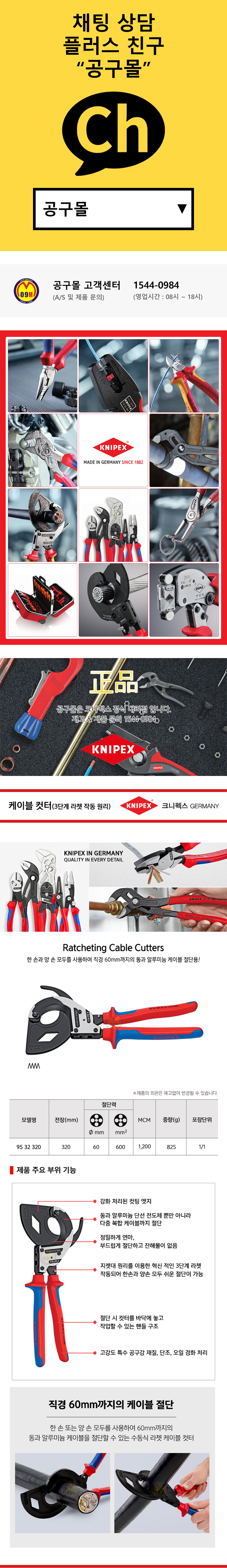 크니펙스 케이블컷터 95-32-320 (60mm) 전선커터 KNIPEX 독일공구, 수공구, 공구몰추천 101011510038