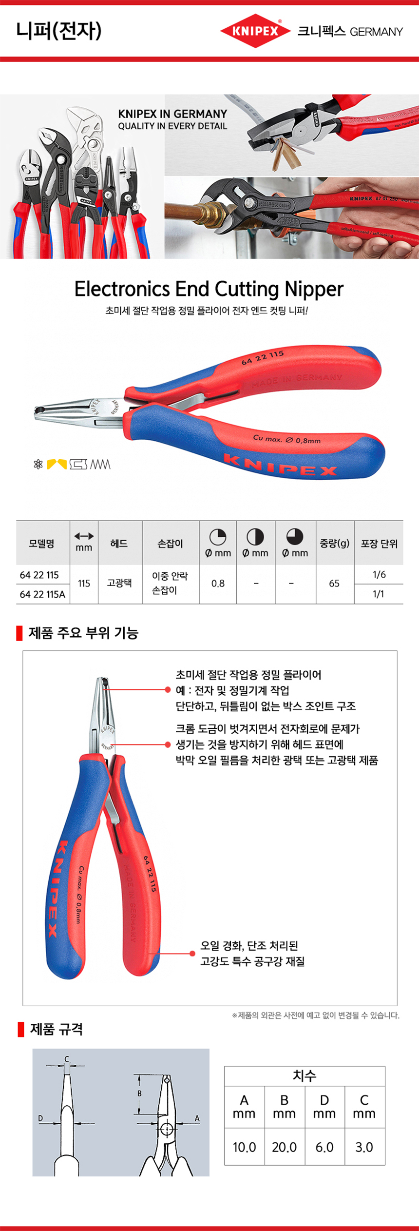 크니펙스 니퍼(전자) 64-22-115 전자니퍼 Knipex 독일공구, 공구몰추천 101001000028