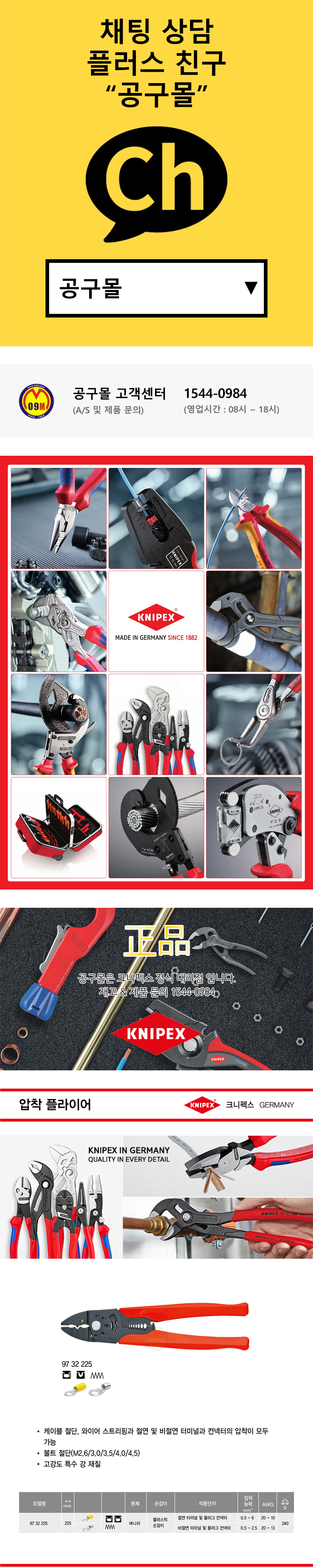 크니펙스 다용도 압착플라이어 97-32-225 압착 스크립퍼 뺀치 터미널압착 플러그컨넥터 101011370031
