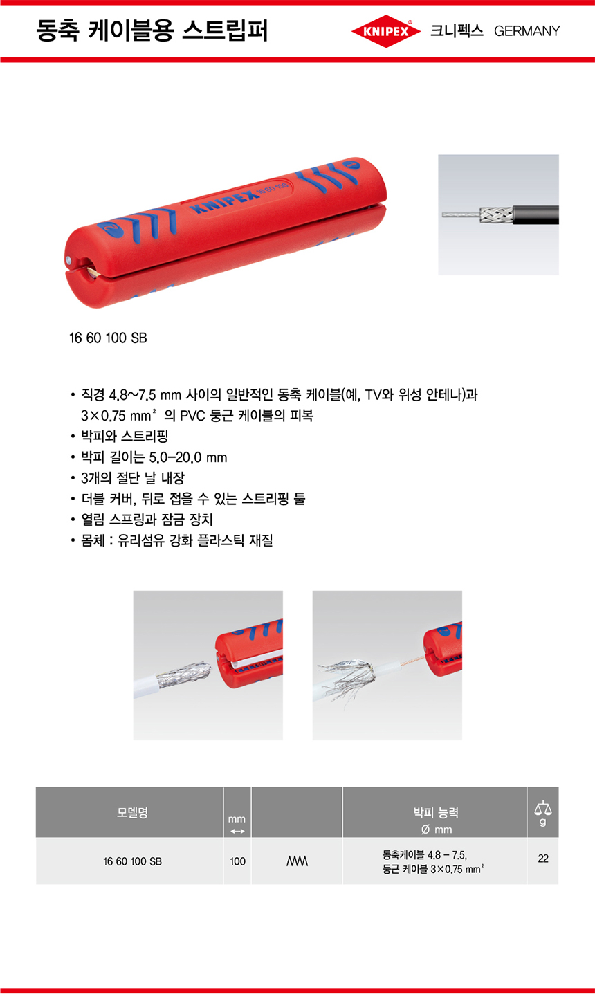 크니펙스 스트립퍼(동축) 16-60-100SB, KNIPEX, 독일공구, 공구몰추천 101011380081
