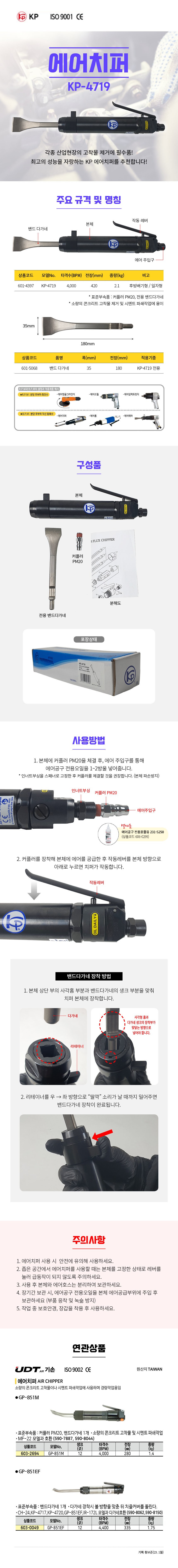 KP 에어치퍼 KP-4719 RPM 4800 262mm 2.1Kg 에어공구, 에어해머, 다가네 공구몰 601-4397