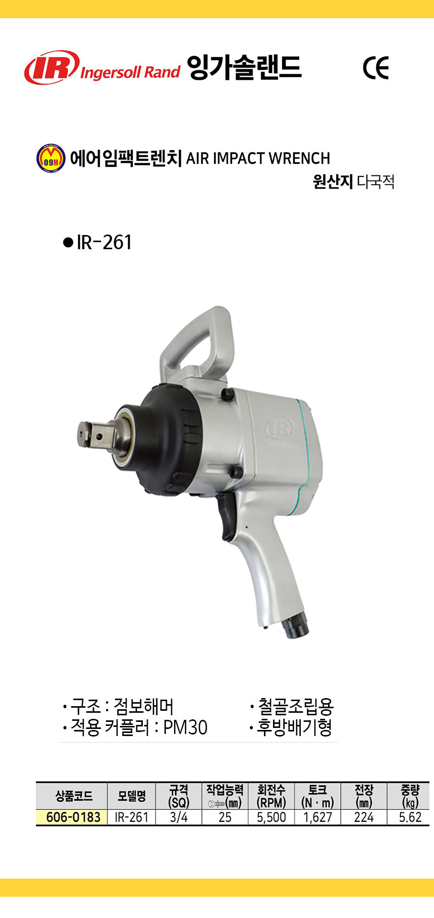 잉가솔랜드 에어임팩트렌치 IR-295A (1SQ) 에어렌치, INGERSOLL RAND 공구몰 추천 C606-0192