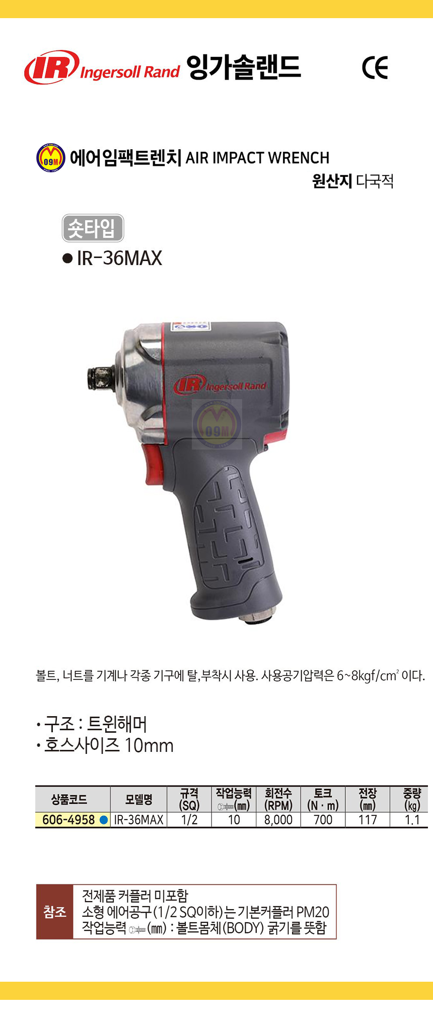 잉가솔랜드 에어임팩트렌치 IR-36MAX(1/2SQ) 숏타입 에어렌치, INGERSOLL RAND 공구몰 추천 C606-4958