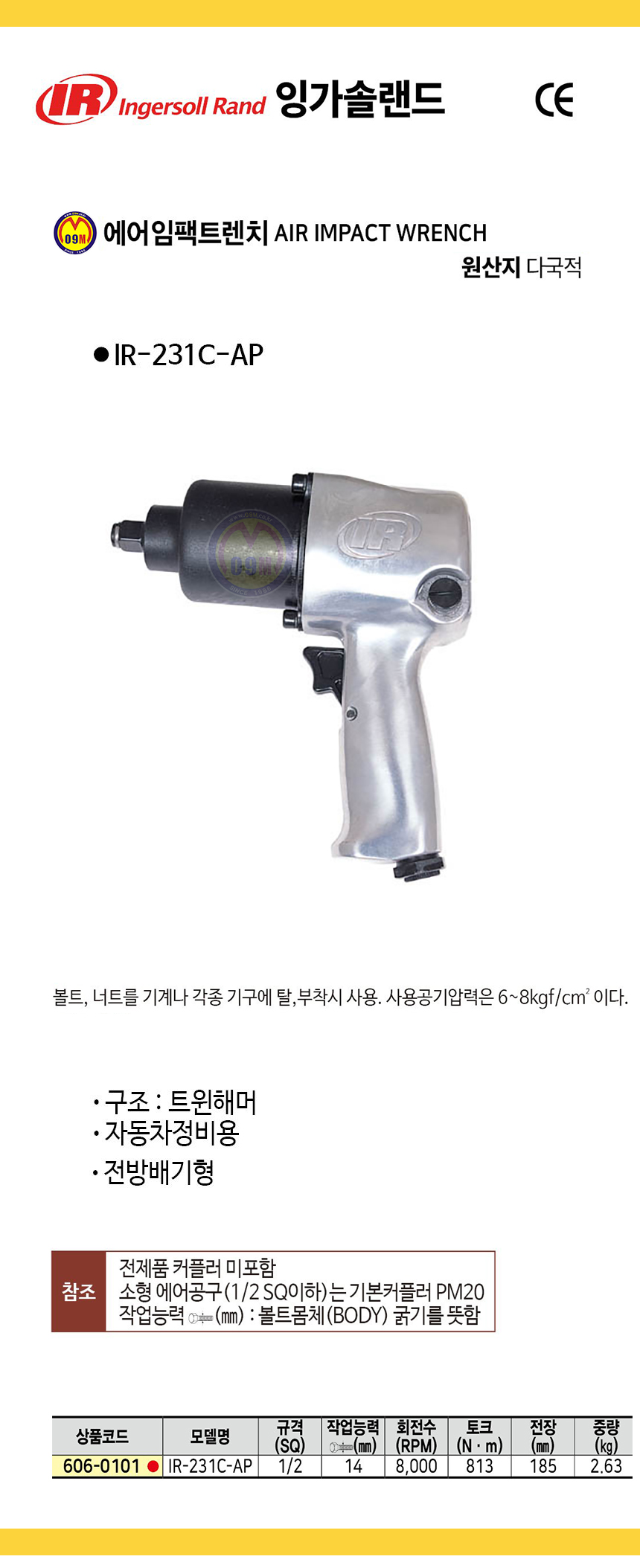 잉가솔랜드 에어임팩트렌치 IR-231C-AP (1/2SQ) 에어렌치, INGERSOLL RAND 공구몰 추천 C606-0101