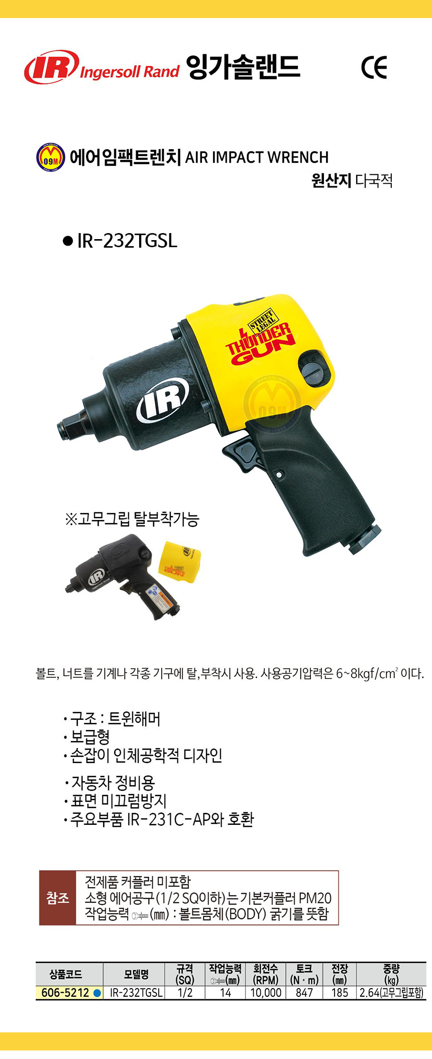 잉가솔랜드 에어임팩트렌치 IR-232TGSL (1/2SQ) 에어렌치, INGERSOLL RAND 공구몰 추천 C606-5212