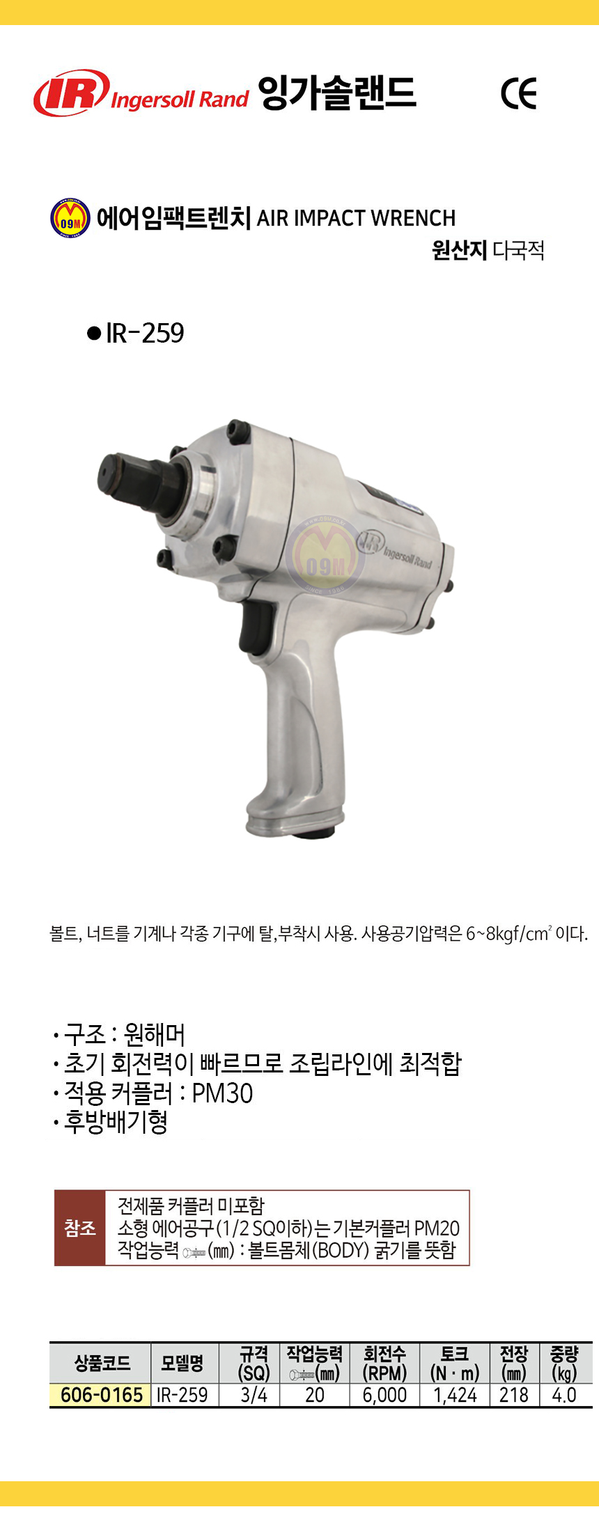 잉가솔랜드 에어임팩트렌치 IR-259 (3/4SQ) 에어렌치, INGERSOLL RAND 공구몰 추천 C606-0165