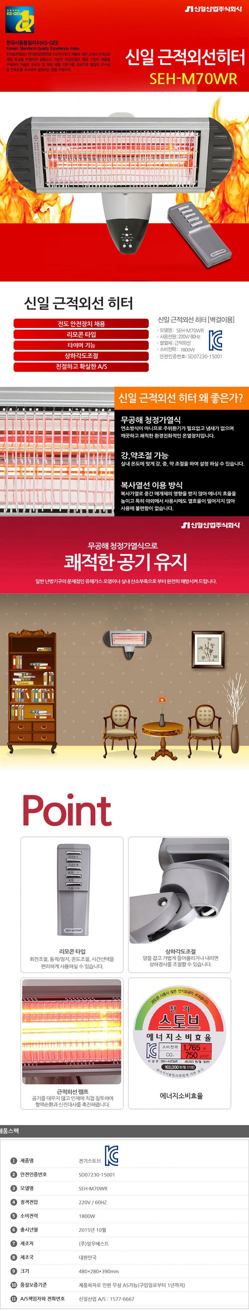 신일 근적외선히터 SEH-M70WR 벽걸이(국산) 전기히터, 공구몰, W875-7344