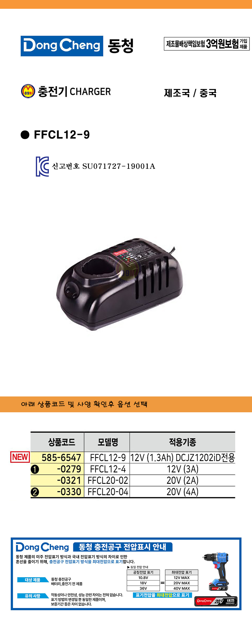동청 충전기 FFCL12-4 (12V-3.0A) DongCheng 공구몰 585-0279