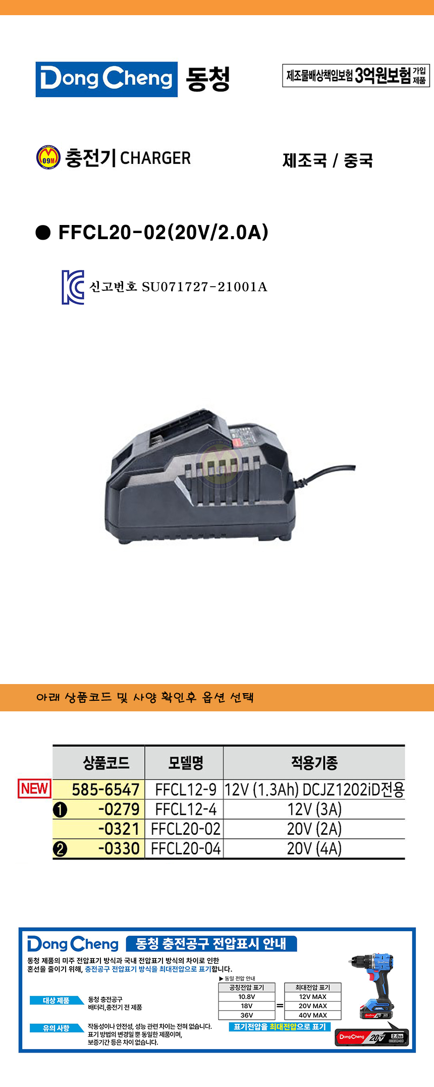 동청 충전기 FFCL20-02 (20V/2.0A) DongCheng 공구몰 585-0321