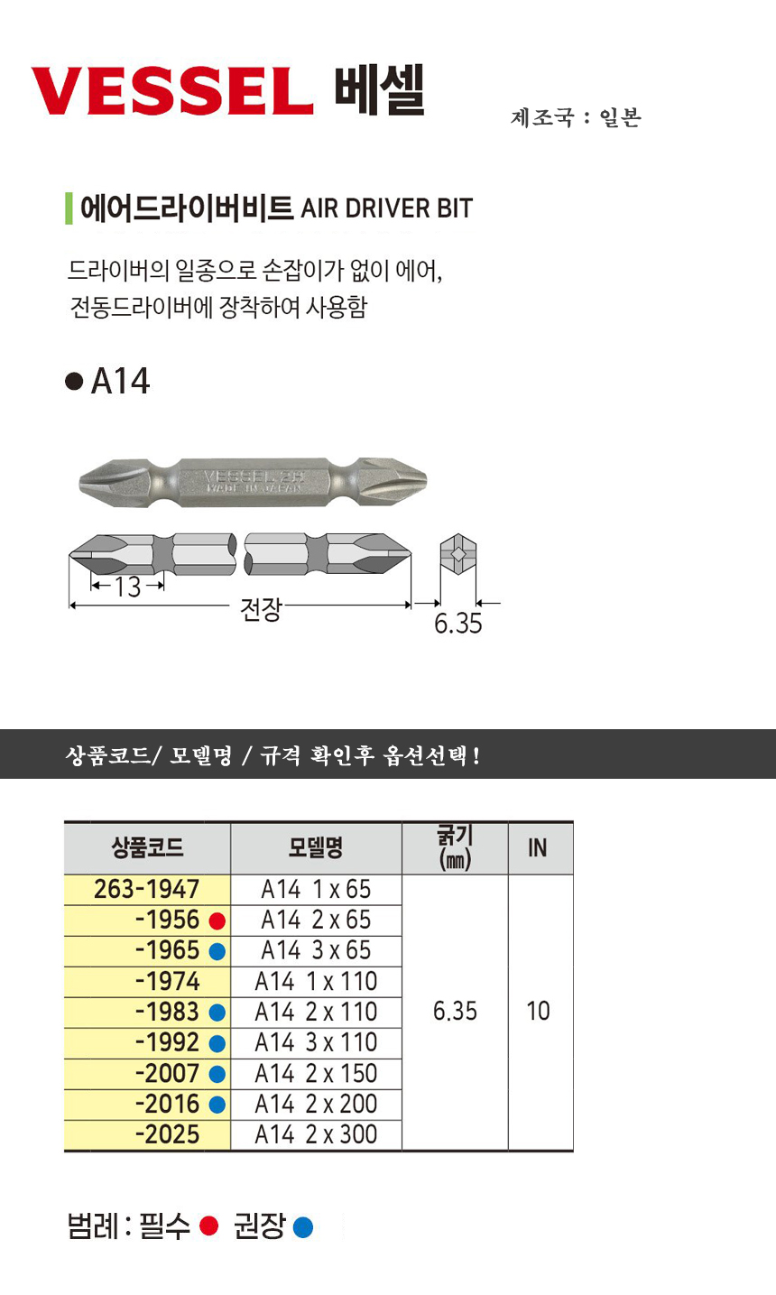 베셀 에어드라이버빗트 A15x2x65/ A15x3x110 VESSEL