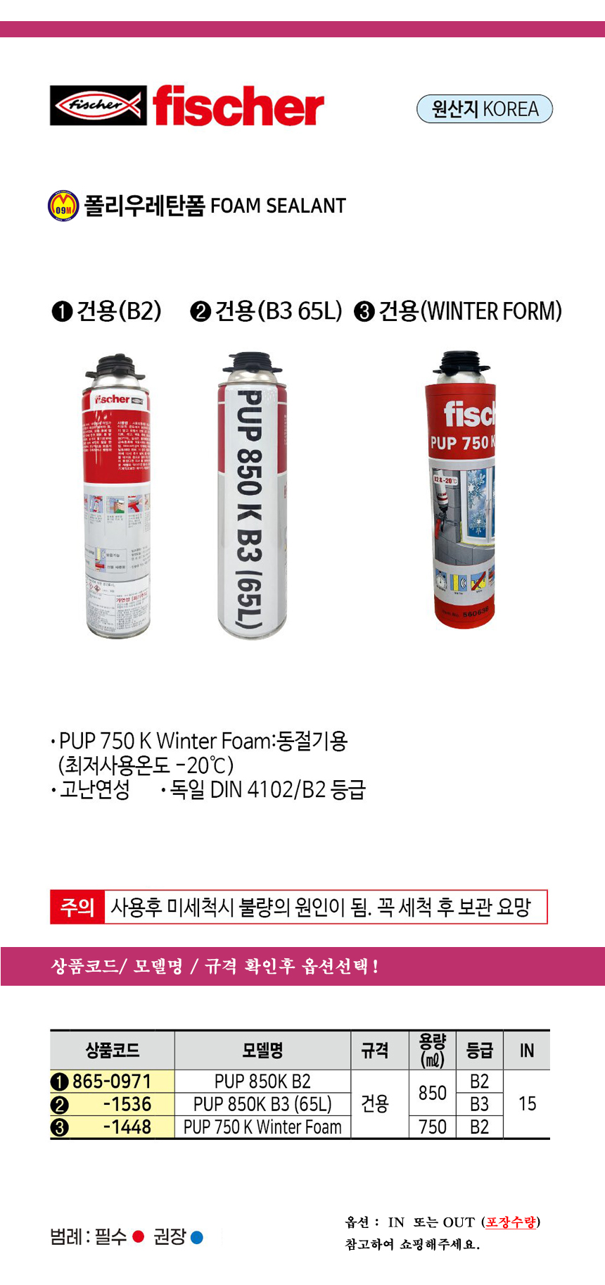 피셔 폴리우레탄폼(난연성) 건용/ PUP 750 B2 / NO.44503 fischer, 공구몰 865-0351
