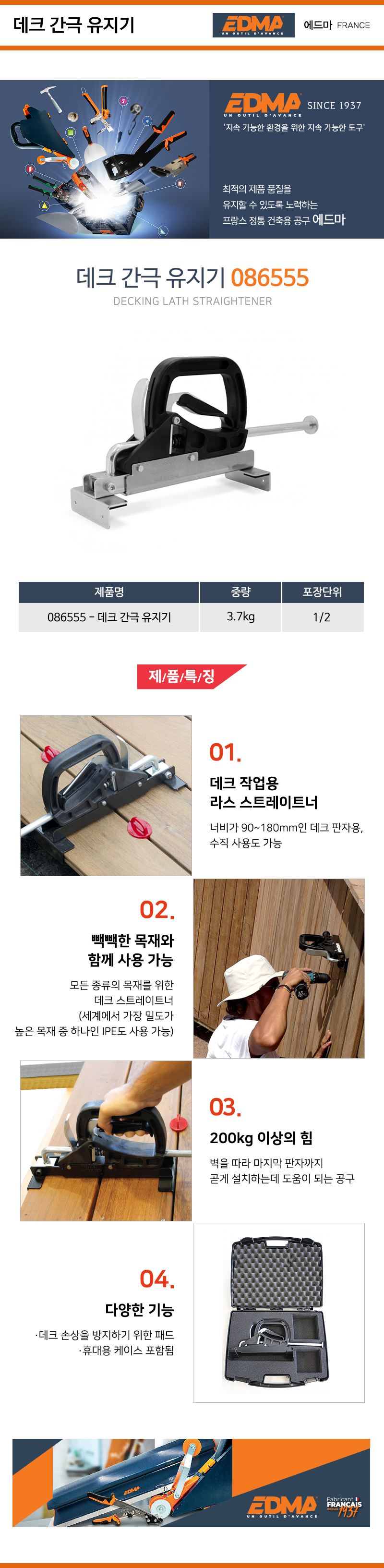 EDMA 데크 간극 유지기 086555 90mm/180mm 에드마 공구몰