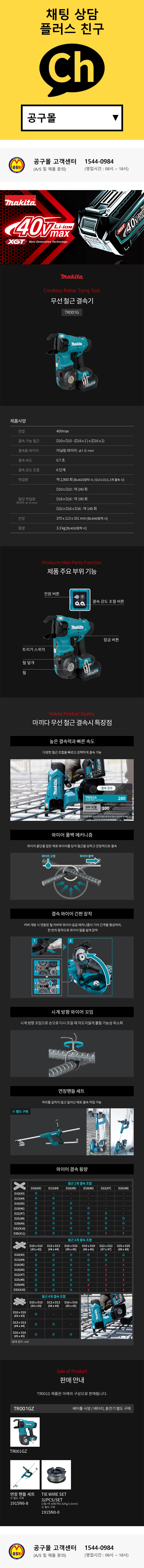 마끼다 40V 무선철근결속기 TR001GZ (40V-베어툴) 철근결속기